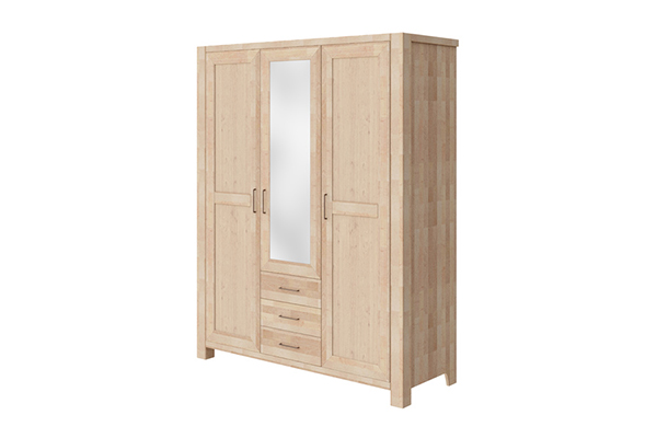 Классический распашной шкаф Fiord 3-х дверный с зеркалом - изготовлен из натурального массива и выполнен в скандинавском стиле. Шкаф очень вместительный и подойдет для любой комнаты. Шкаф изготовлен из натурального дерева, различных пород на ваш выбор дуб, бук, сосна, береза. Богатый выбор расцветок подойдут под любой интерьер. Зеркало на фасаде не только поможет вам одеваться, но и визуально расширит и осветлит пространство за счет отраженного света. Правая и левая секция представляют собой вместительные ниши с продольным вешалом для платьев и рубашек и верхней полкой для шляп и коробок. В центральной секции шкафа вверху предусмотрены 3 полки для хранения одежды и белья с возможностью регулировки высоты на 3-х уровнях. Внизу расположены 3 выдвижных ящика для хранения вещей на направляющих с доводчиками. |